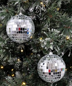 Christmas Concepts® Pack of 2-100mm (4″) Silver Mirror Disco Ball Baubles – Christmas Tree Hanging Decorations