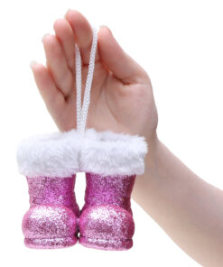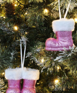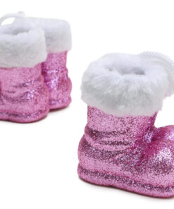Christmas Concepts® Pack of 2–10cm Glitter Hanging Santa Boots With White Fur Trim – Christmas Tree Trims/ Baubles (Baby Pink)