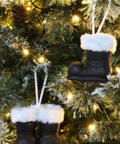 Christmas Concepts® Pack of 2–10cm Glitter Hanging Santa Boots With White Fur Trim – Christmas Tree Trims/ Baubles (Black)