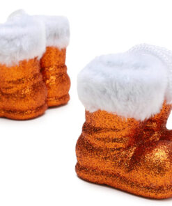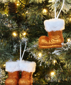 Christmas Concepts® Pack of 2–10cm Glitter Hanging Santa Boots With White Fur Trim – Christmas Tree Trims/ Baubles (Copper)