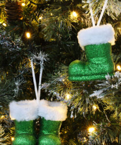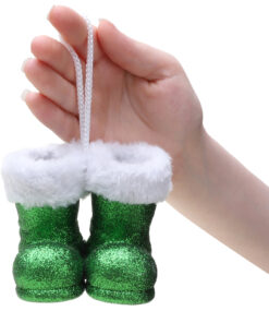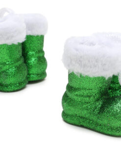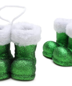 Christmas Concepts® Pack of 2–10cm Glitter Hanging Santa Boots With White Fur Trim – Christmas Tree Trims/ Baubles (Emerald Green)