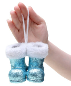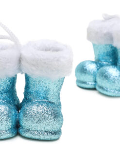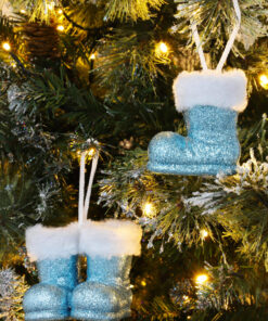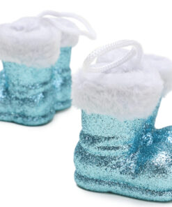 Christmas Concepts® Pack of 2–10cm Glitter Hanging Santa Boots With White Fur Trim – Christmas Tree Trims/ Baubles (Ice Blue)
