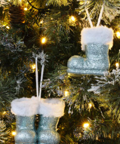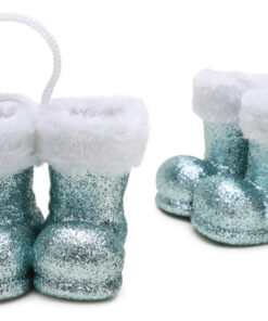 Christmas Concepts® Pack of 2–10cm Glitter Hanging Santa Boots With White Fur Trim – Christmas Tree Trims/ Baubles (Mint Green)