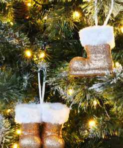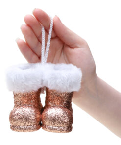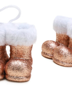 Christmas Concepts® Pack of 2–10cm Glitter Hanging Santa Boots With White Fur Trim – Christmas Tree Trims/ Baubles (Rose Gold)