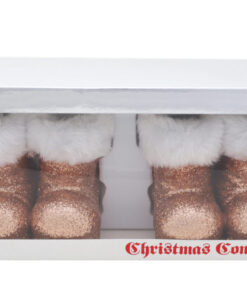 Add something different to your Christmas display this year with these luxury fur trimmed and glitter Santa boots. Every boot is hollow making them Ideal for hiding your festive sweet treats and goodies in plain sight. Each pair of boots measure 10cm x 8cm x 7cm and comes with a durable storage box, keeping them in great condition to use year after year. You will receive 2 pairs of Santa boots with one rope hanging loop per pair. Designed and manufactured exclusively for Christmas Concepts.