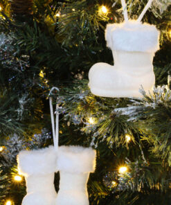 Christmas Concepts® Pack of 2–10cm Glitter Hanging Santa Boots With White Fur Trim – Christmas Tree Trims/ Baubles (White)