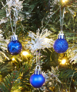 These beautiful shatterproof mini baubles are sure to brighten up any Christmas tree! They can also be used to make a garland by threading string or ribbon through the top and hanging them up in the window, from the mantle piece or on the wall. This pack contains 25 blue baubles in total, including an assortment of glitter, matte and shiny designs. Each bauble measures approximately 2.5cm and comes with a silver top with a silver string loop attached. Designed and manufactured exclusively for Christmas Concepts Ltd.