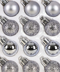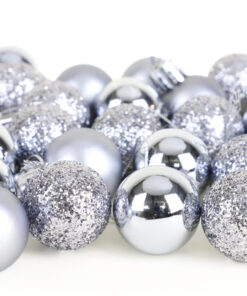 - This pack contains 25 grey baubles in total, including an assortment of glitter, matte and shiny designs.
