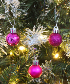These beautiful shatterproof mini baubles are sure to brighten up any Christmas tree! They can also be used to make a garland by threading string or ribbon through the top and hanging them up in the window, from the mantle piece or on the wall. This pack contains 25 hot pink baubles in total, including an assortment of glitter, matte and shiny designs. Each bauble measures approximately 2.5cm and comes with a silver top with a silver string loop attached. Designed and manufactured exclusively for Christmas Concepts Ltd.