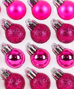 - This pack contains 25 hot pink baubles in total, including an assortment of glitter, matte and shiny designs.