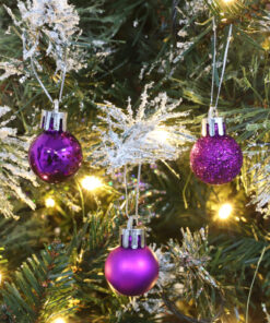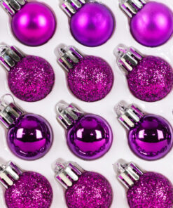 These beautiful shatterproof mini baubles are sure to brighten up any Christmas tree! They can also be used to make a garland by threading string or ribbon through the top and hanging them up in the window, from the mantle piece or on the wall. This pack contains 25 purple baubles in total, including an assortment of glitter, matte and shiny designs. Each bauble measures approximately 2.5cm and comes with a silver top with a silver string loop attached. Designed and manufactured exclusively for Christmas Concepts Ltd.