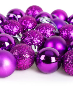 - This pack contains 25 purple baubles in total, including an assortment of glitter, matte and shiny designs.