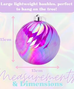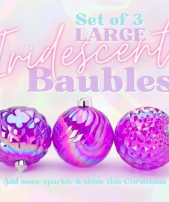 - Each bauble measures 150mm (6″) and comes in a beautiful iridescent faceted design.
