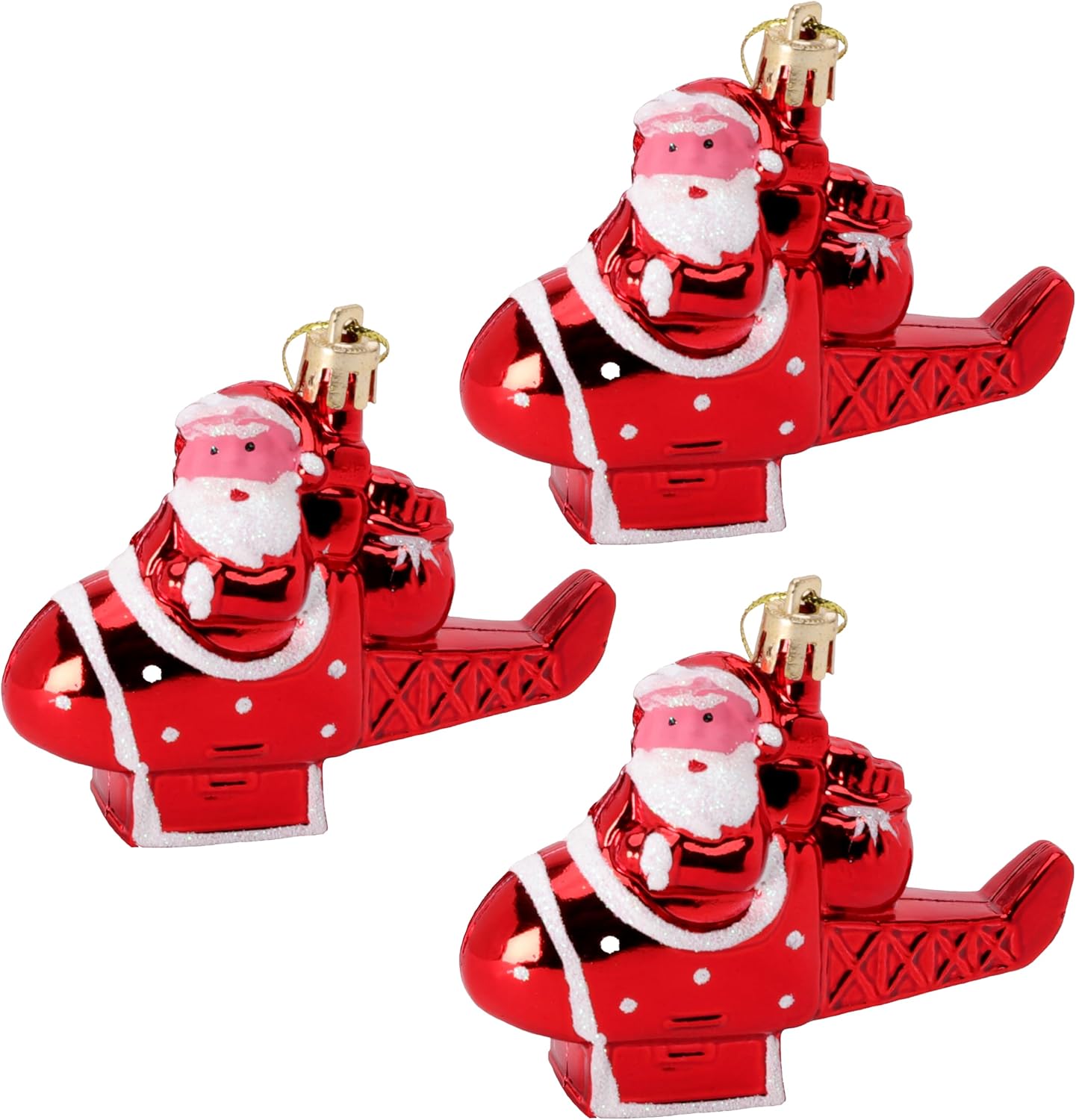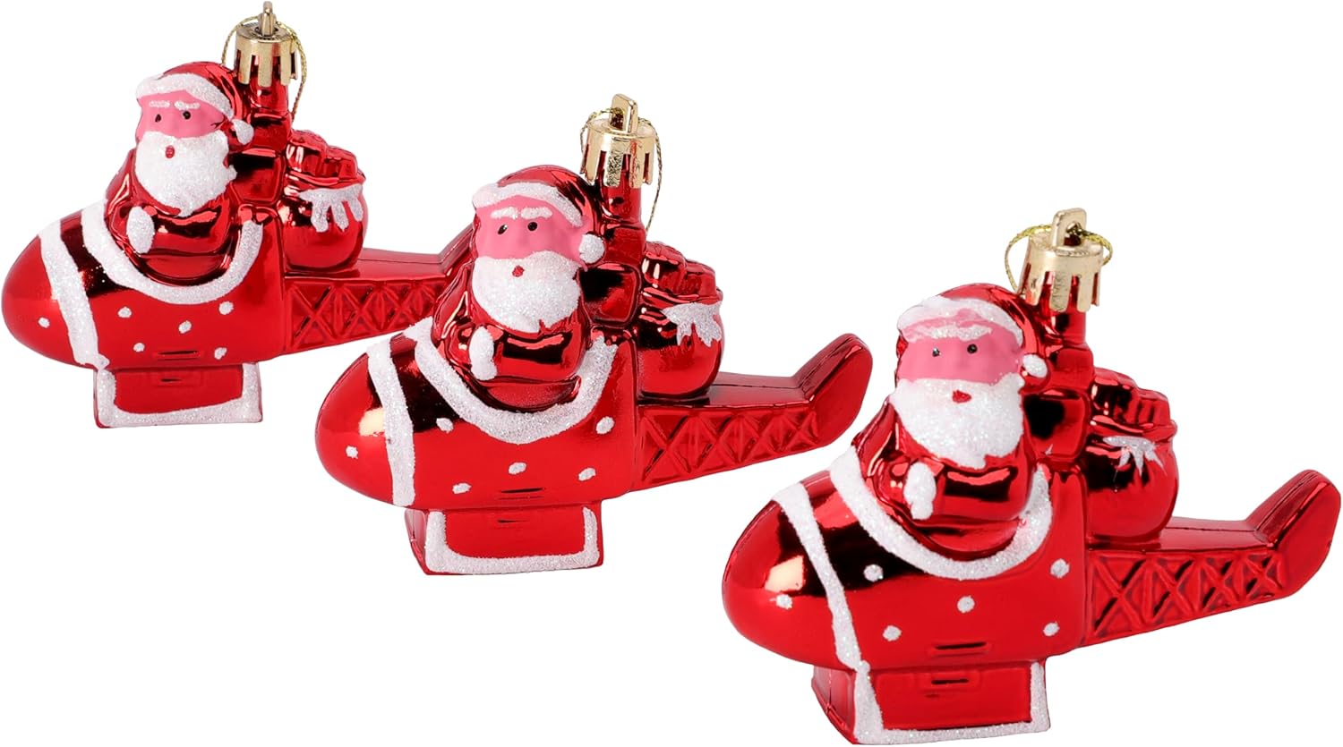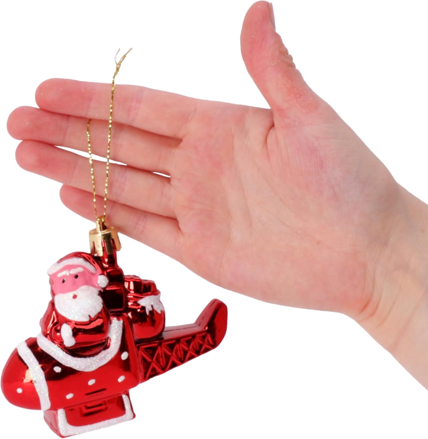 Christmas Concepts® Pack of 3 - 90mm (3.5") Red & White Glittery Santa In Helicopter Baubles - Christmas Tree Decorations