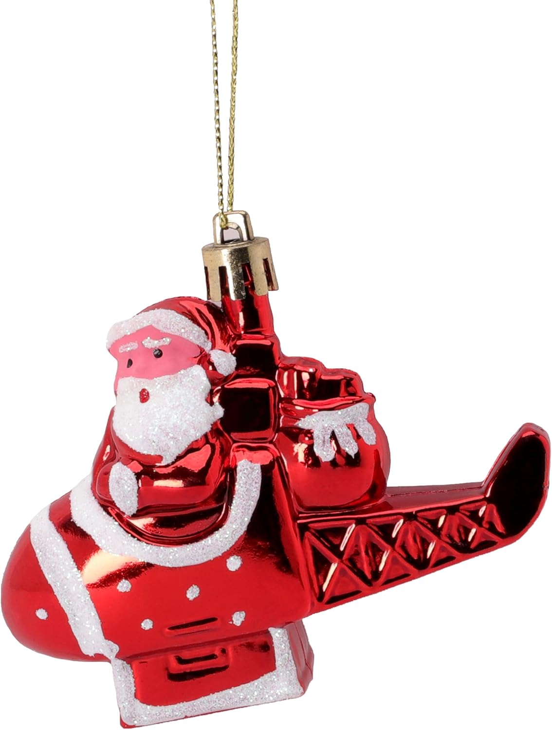 • Add a fun and festive twist to your Christmas decorations with these eye catching Santa helicopter baubles. Each bauble features Santa in a red Helicopter decorated with irridescent glitter.