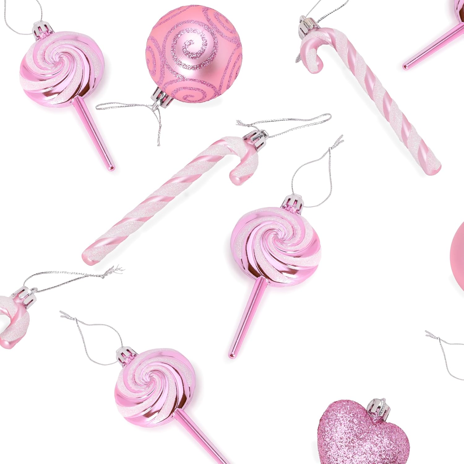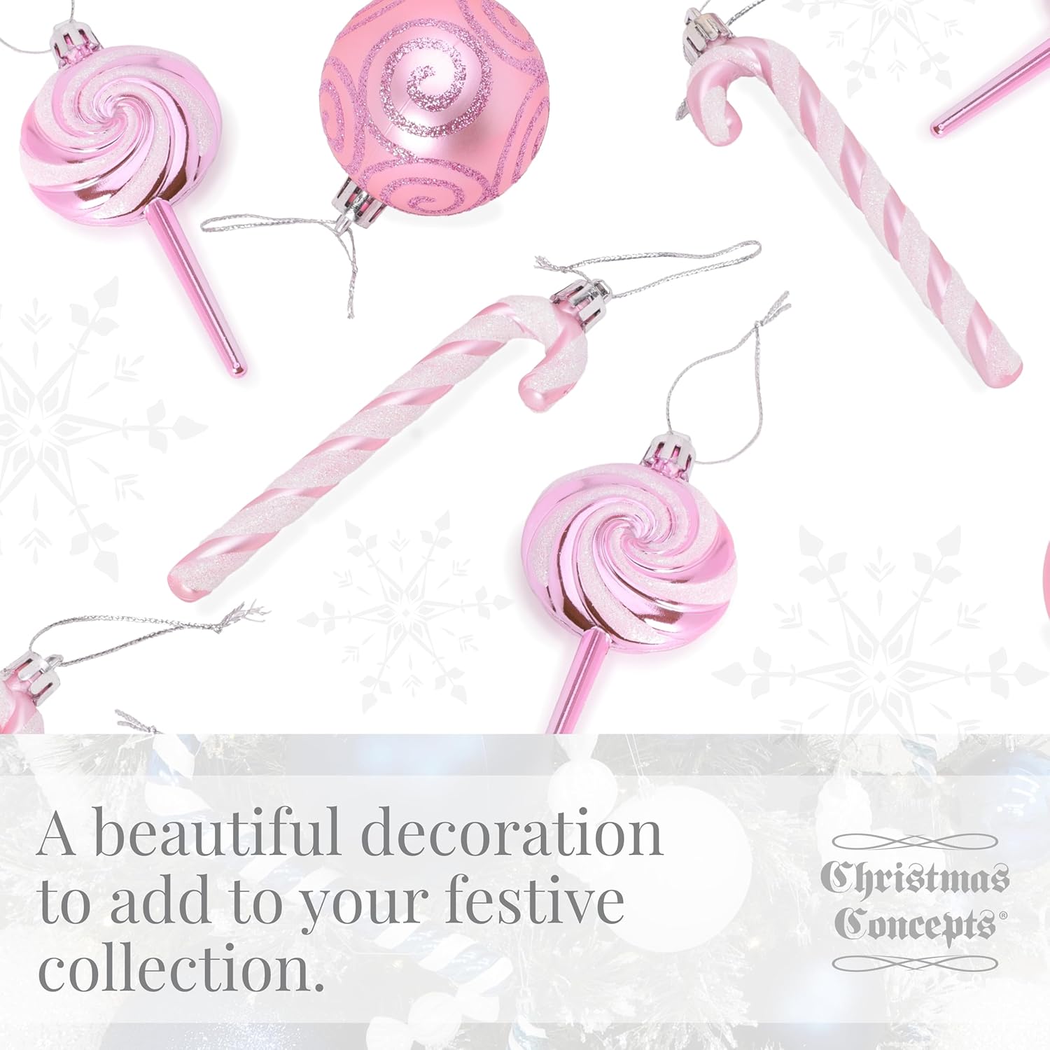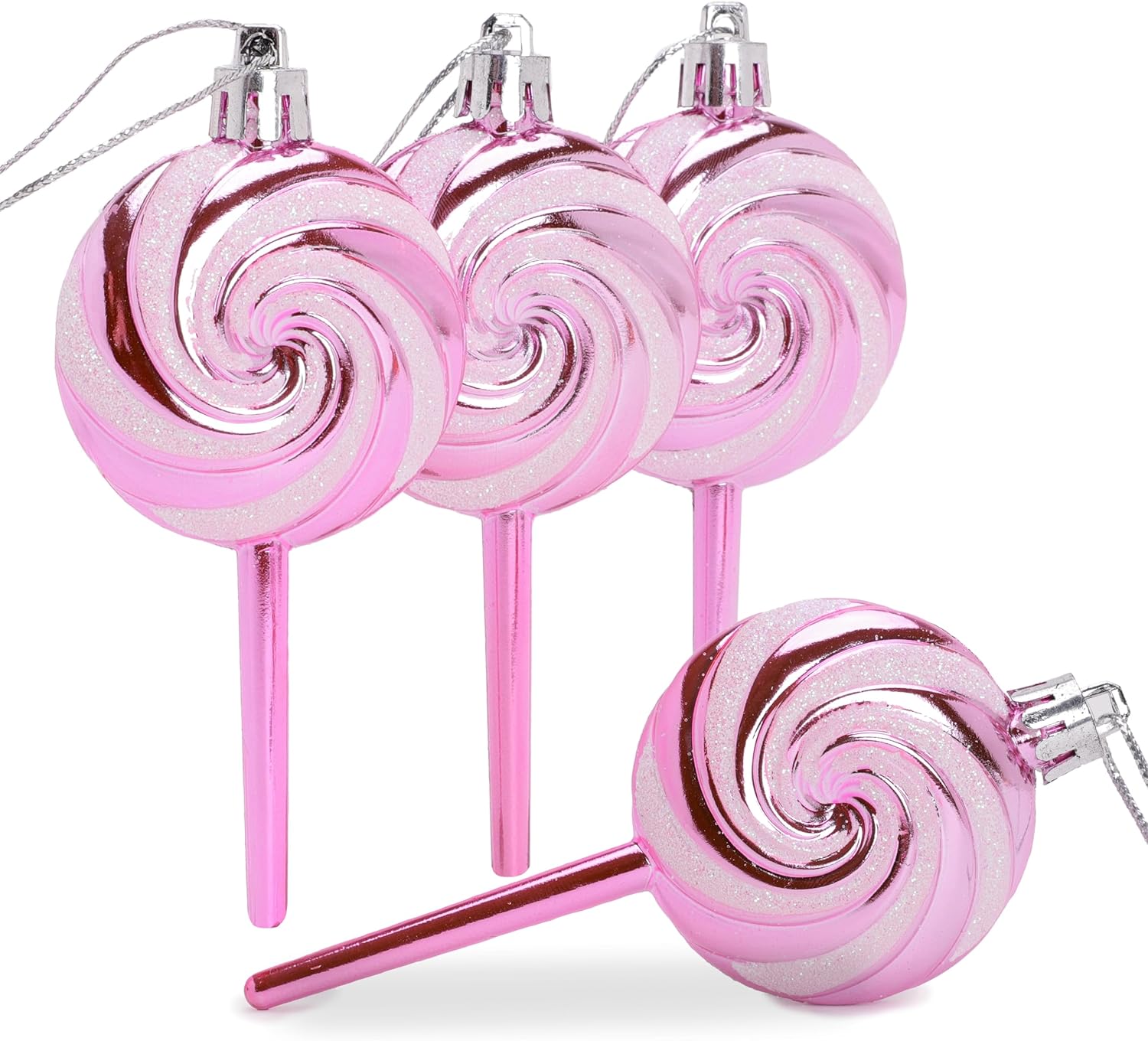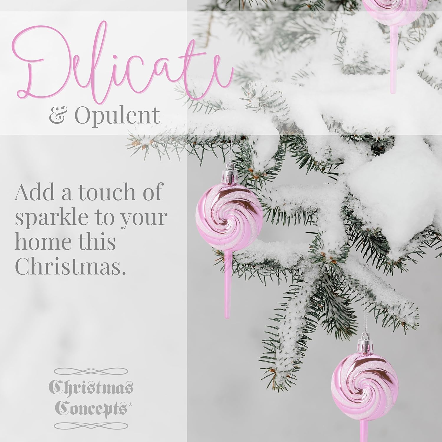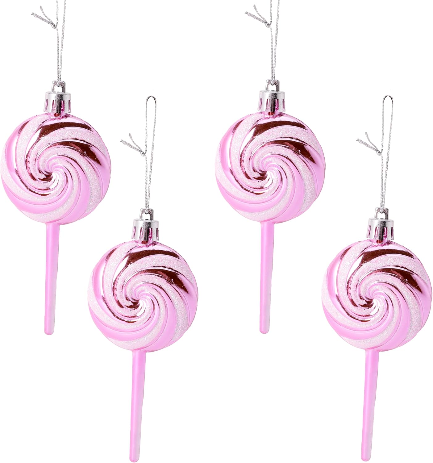 Pack of 4-110mm (4.3″) Baby Pink Glittery Festive Lollipop Baubles – Christmas Tree Decorations