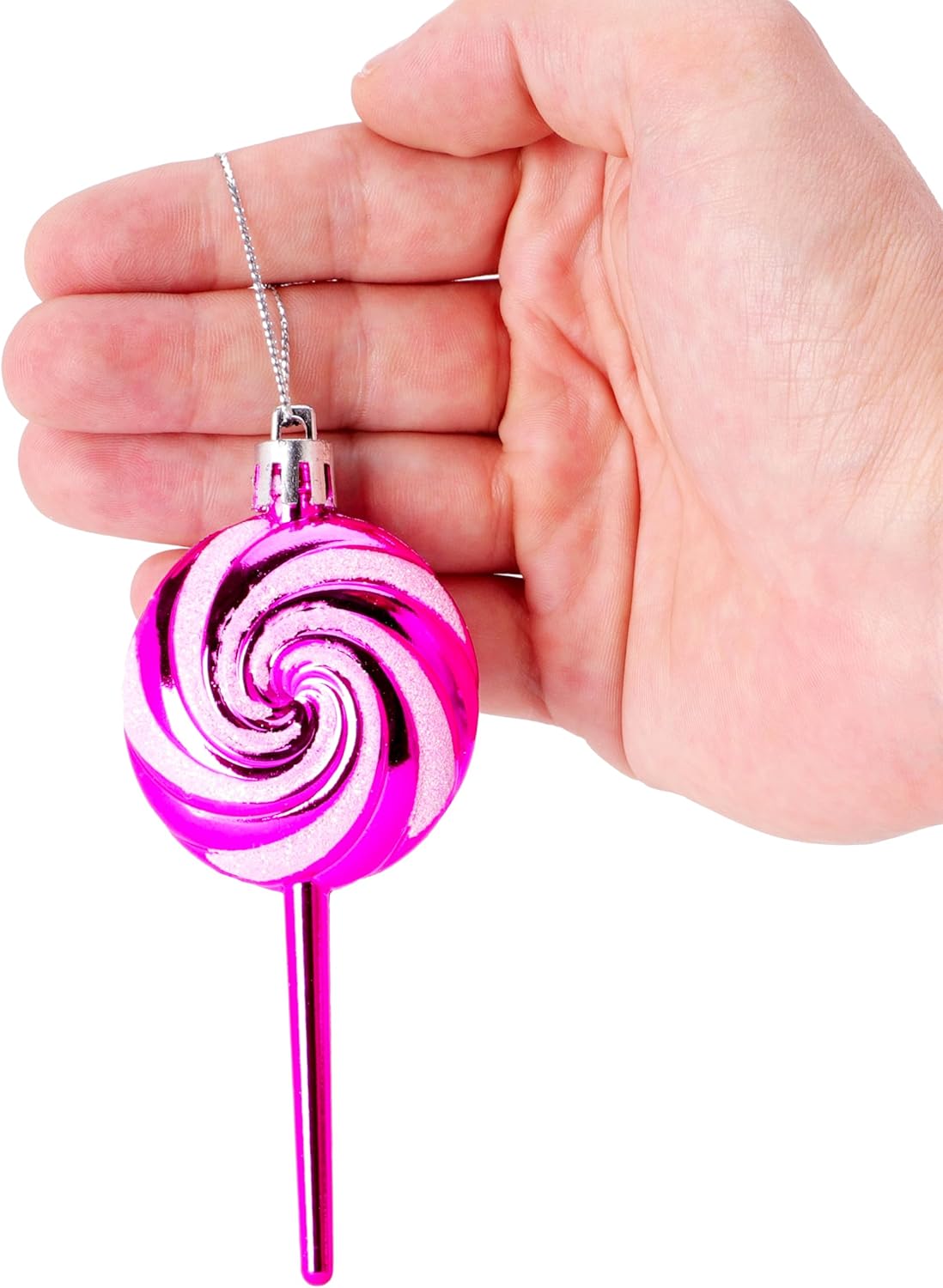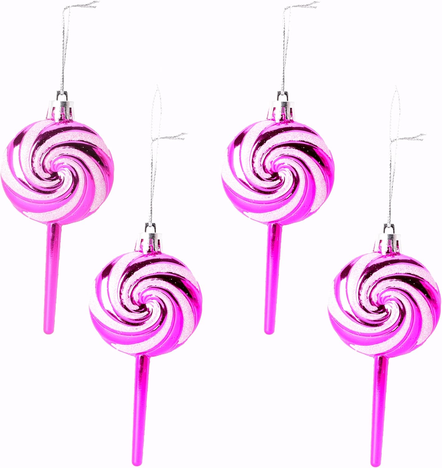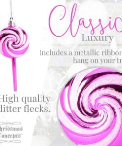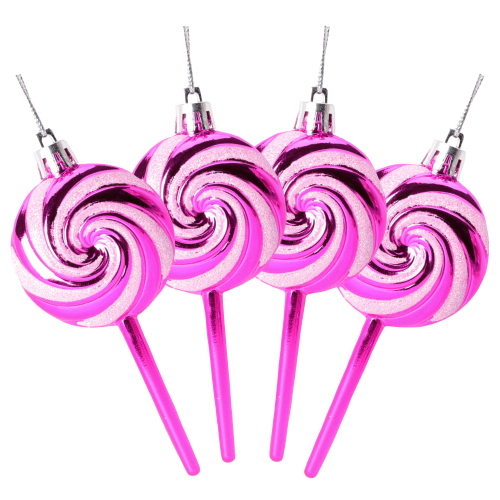 Pack of 4-110mm (4.3″) Hot Pink Glittery Festive Lollipop Baubles – Christmas Tree Decorations