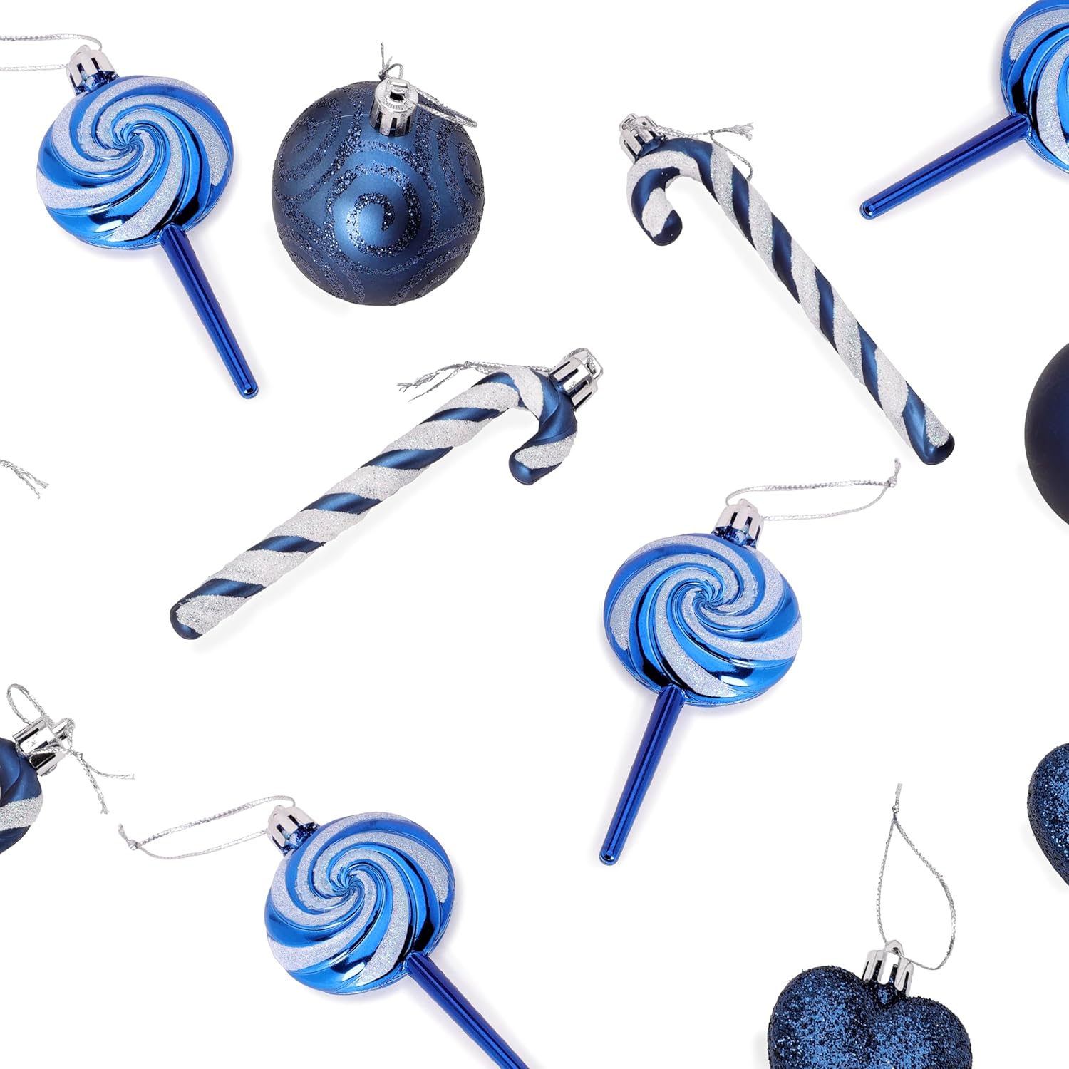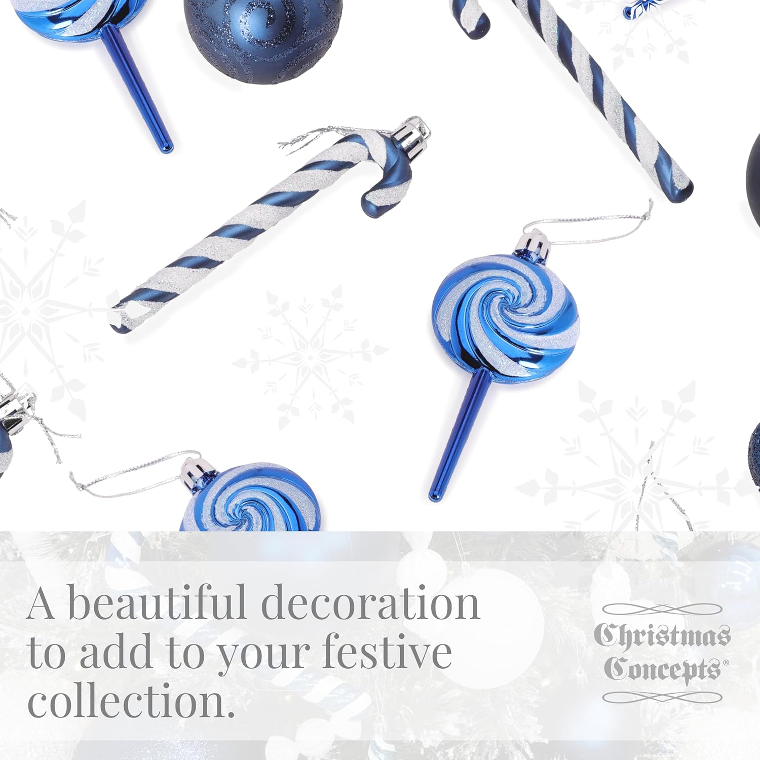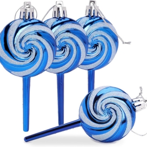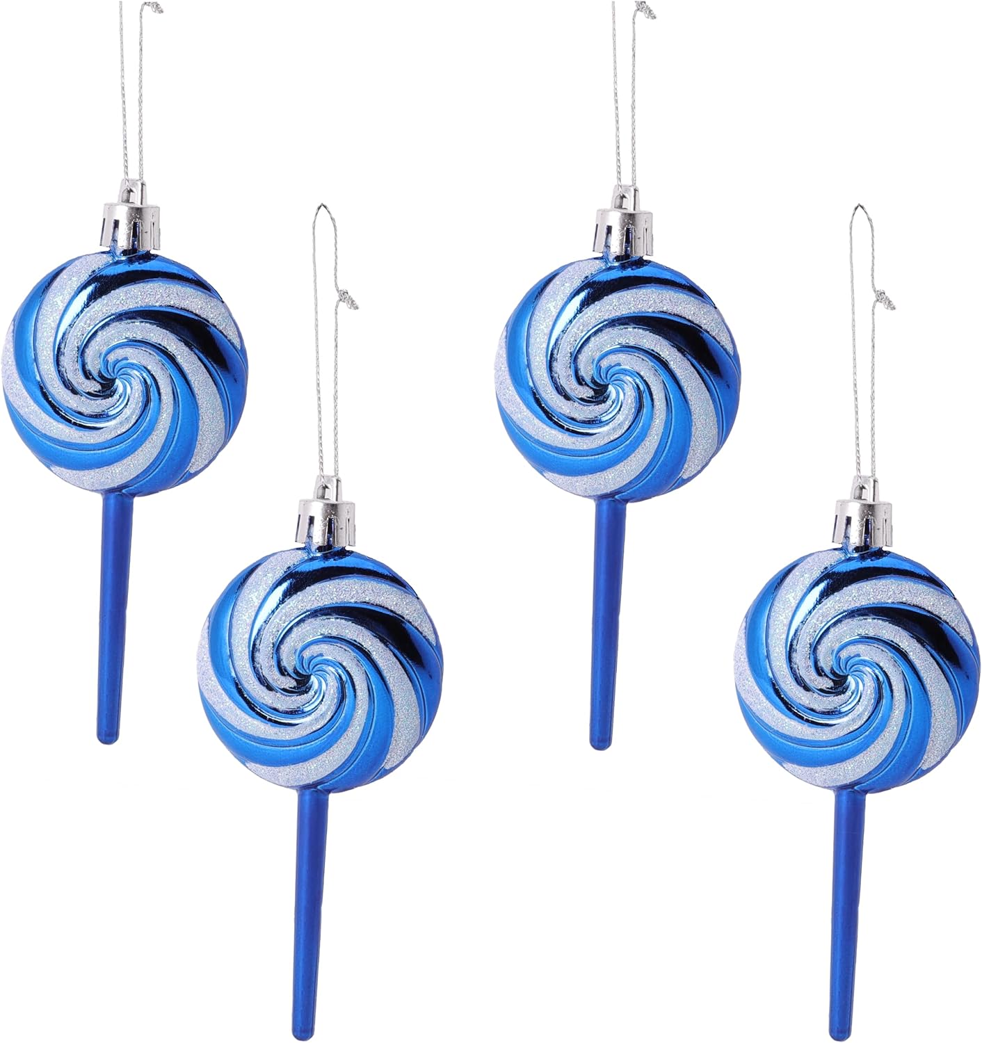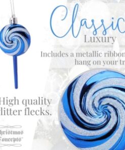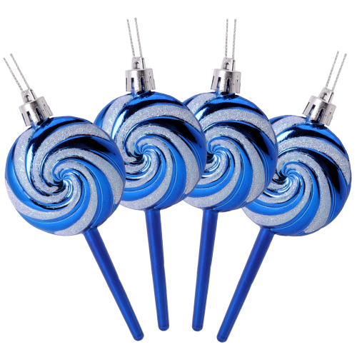 Pack of 4-110mm (4.3″) Midnight Blue Glittery Festive Lollipop Baubles – Christmas Tree Decorations