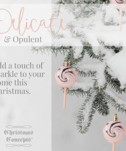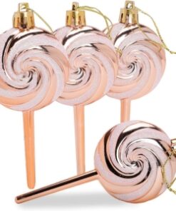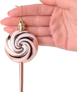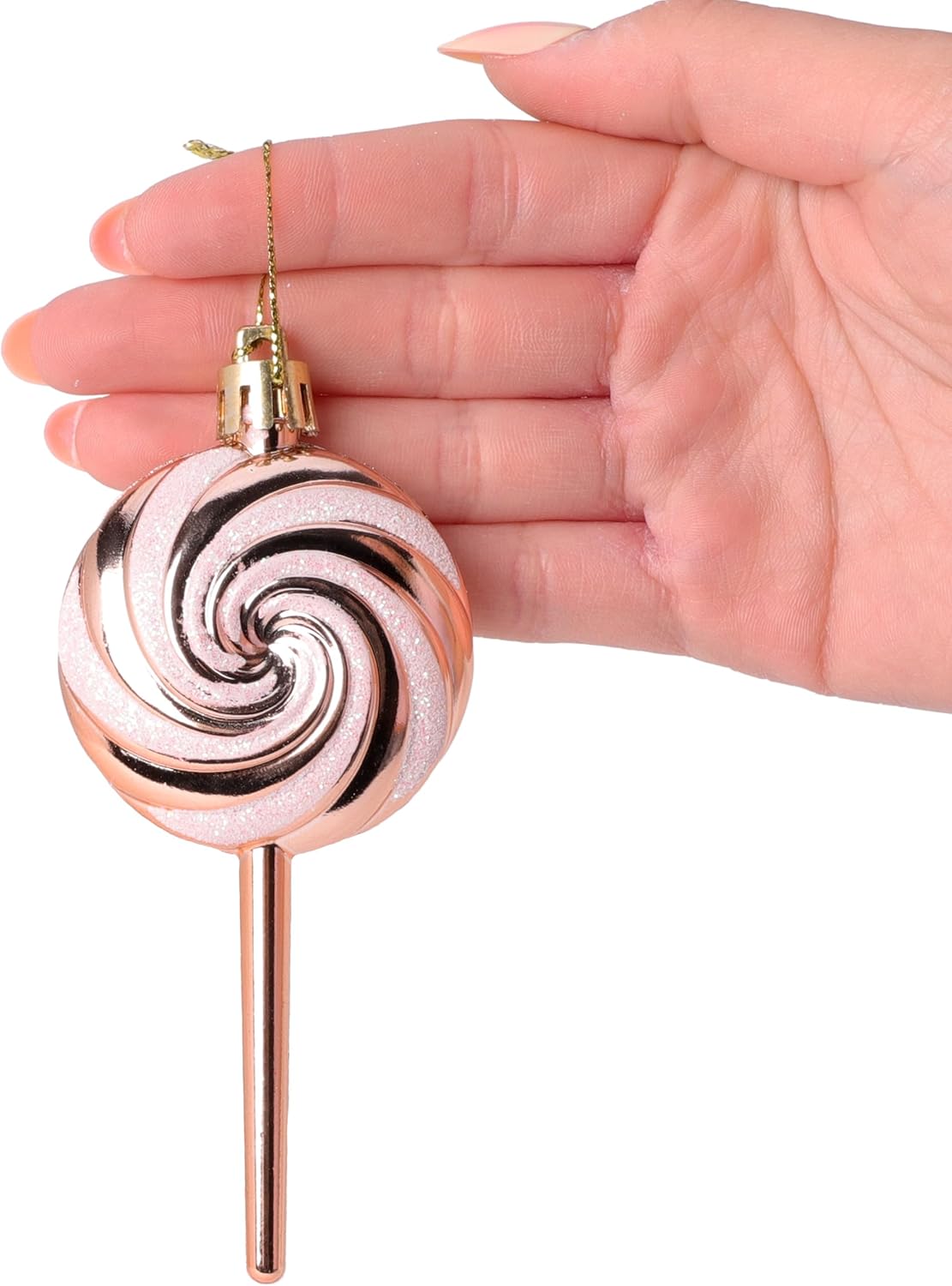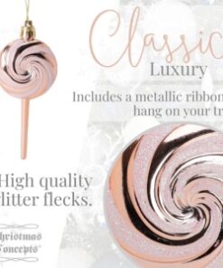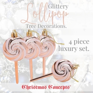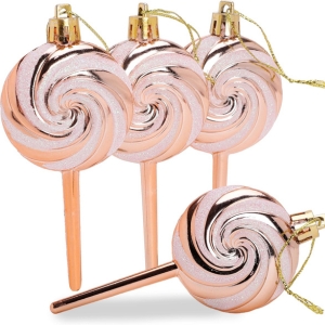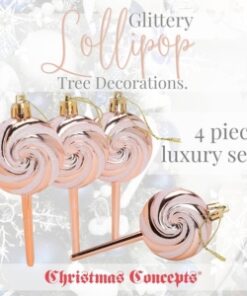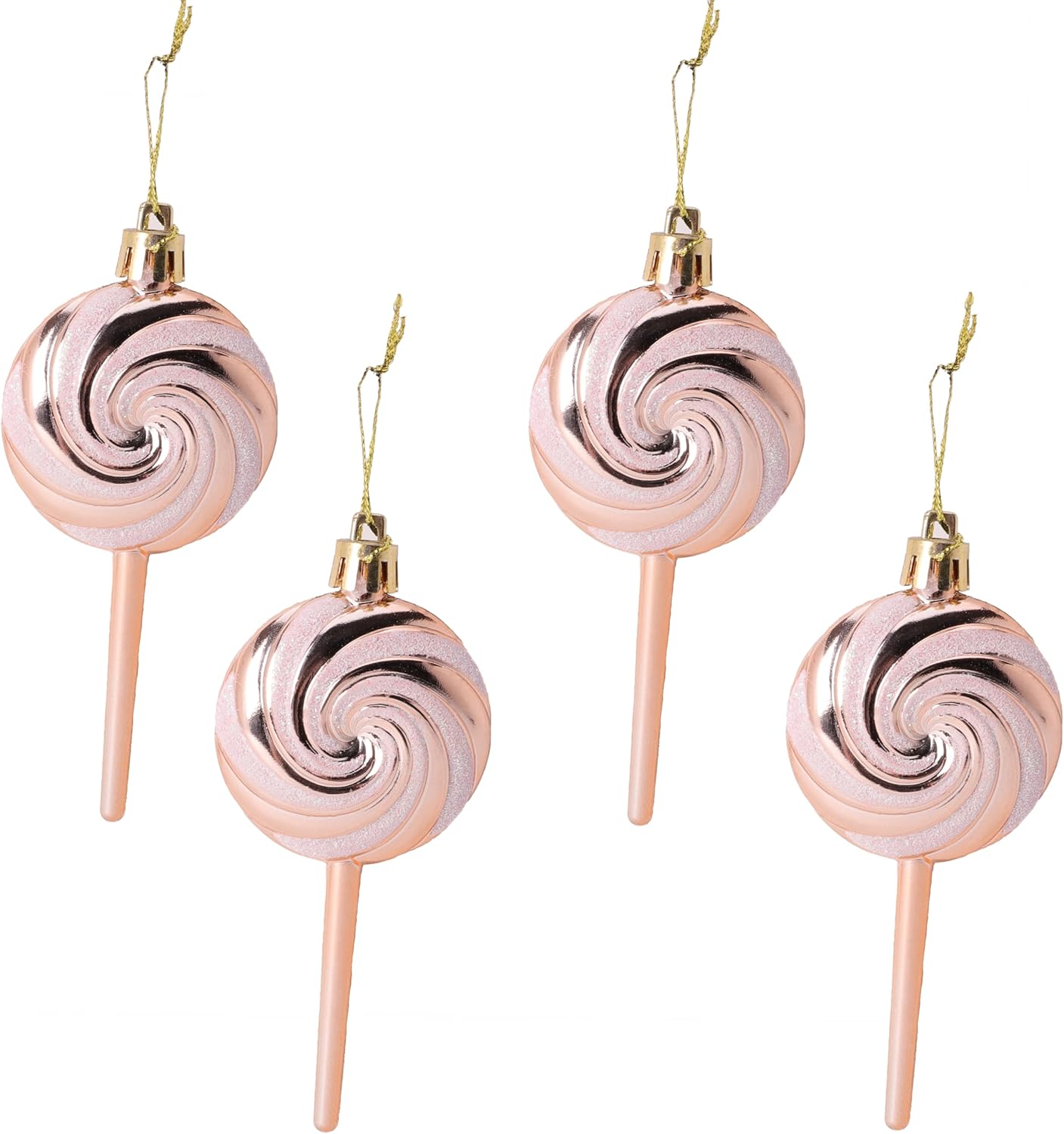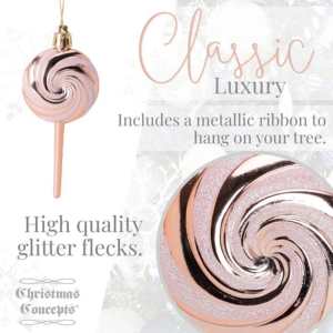 Pack of 4-110mm (4.3″) Rose Gold Glittery Festive Lollipop Baubles – Christmas Tree Decorations