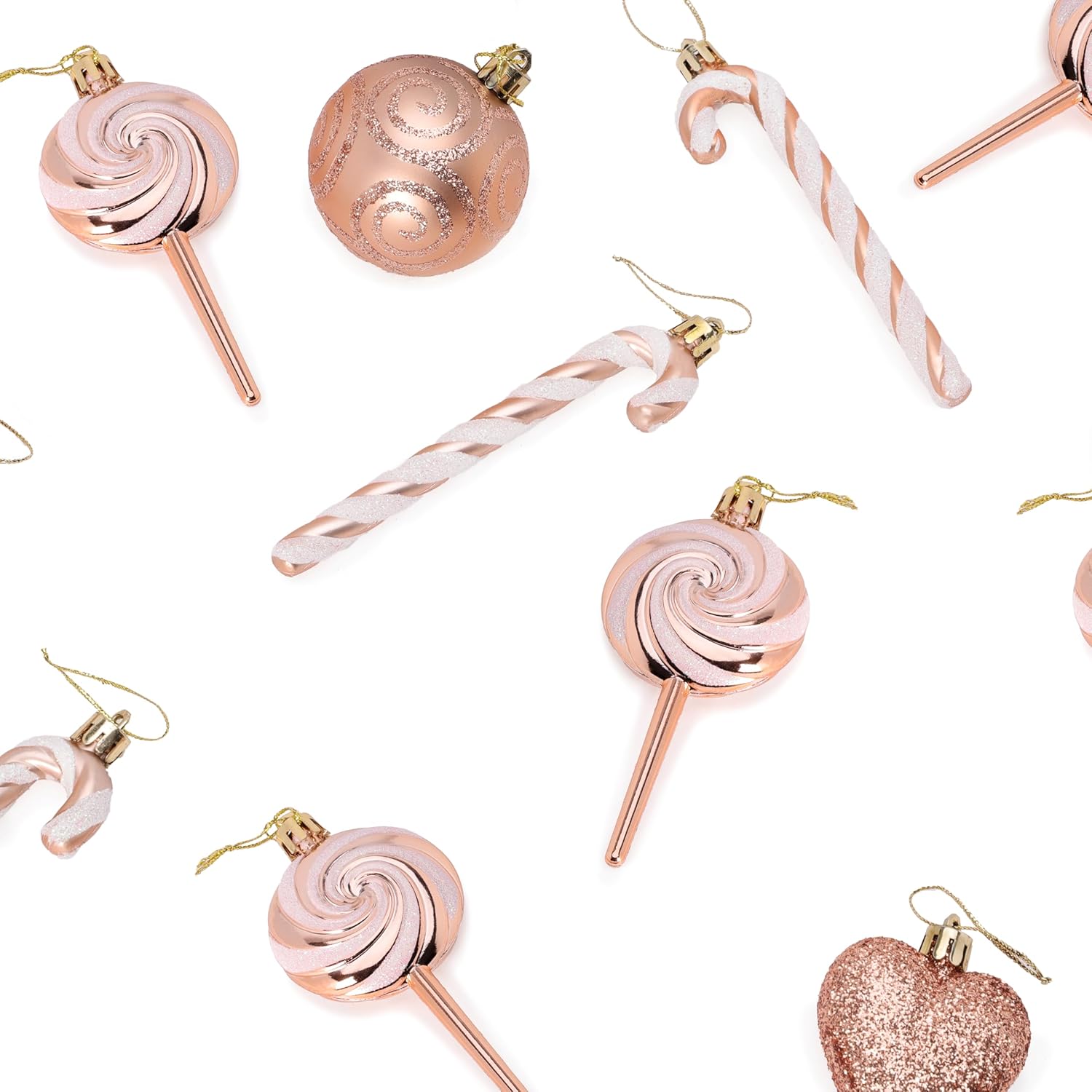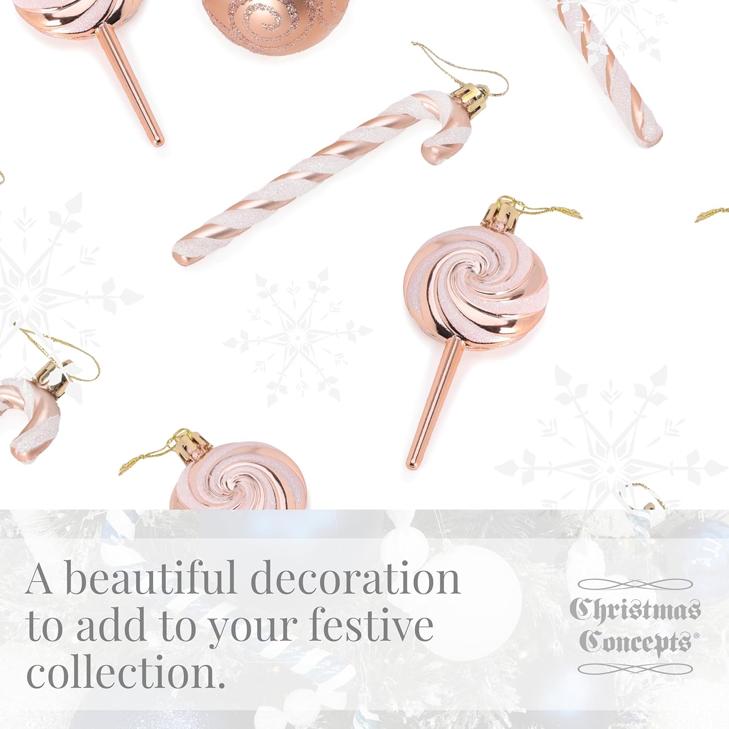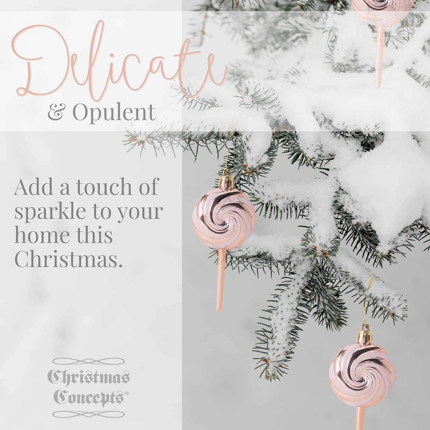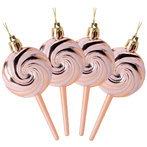 Pack of 4-110mm (4.3") Rose Gold Glittery Festive Lollipop Baubles - Christmas Tree Decorations
