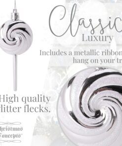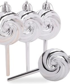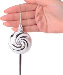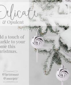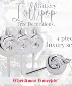 Pack of 4-110mm (4.3″) Silver Glittery Festive Lollipop Baubles – Christmas Tree Decorations
