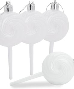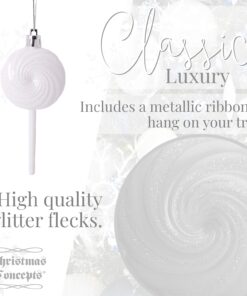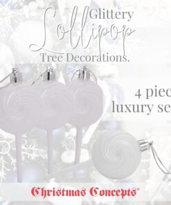 Christmas Concepts® Pack of 4-110mm (4.3″) White Glittery Festive Lollipop Baubles – Christmas Tree Decorations