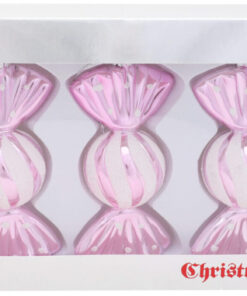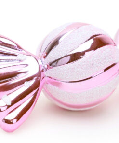 - Each bauble comes decorated with a shiny base, glittery iridescent spotty ends and stripey centre.