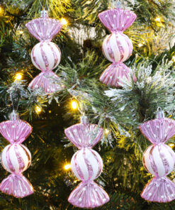 Christmas Concepts® Pack of 5-110mm Large Sweet Shaped Baubles – Shiny & Glitter Decorated – Christmas Baubles (Baby Pink)