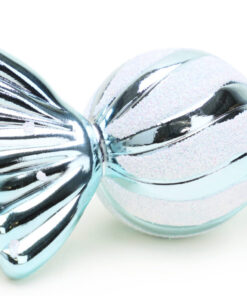 - Each bauble comes decorated with a shiny base, glittery iridescent spotty ends and stripey centre.
