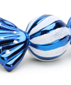 Each bauble comes decorated with a shiny base, glittery iridescent spotty ends and stripey centre.