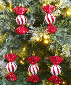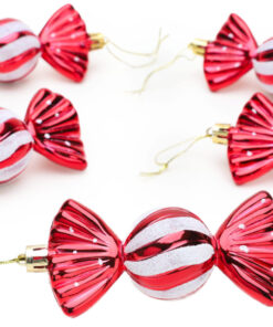 Christmas Concepts® Pack of 5-110mm Large Sweet Shaped Baubles – Shiny & Glitter Decorated – Christmas Baubles (Red)