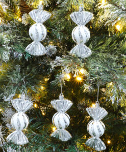 Christmas Concepts® Pack of 5-110mm Large Sweet Shaped Baubles – Shiny & Glitter Decorated – Christmas Baubles (Silver)