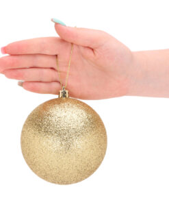 - Each bauble measures approximately 10cm and comes with a gold top with a gold string loop attached.