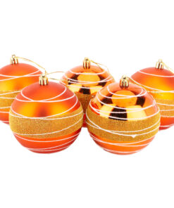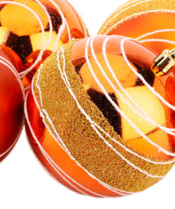 - This pack contains 5 copper baubles in total, including an assortment of matte & shiny with gold beads and white glitter swirl designs.