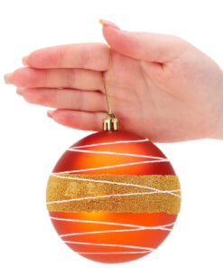 - Each bauble measures approximately 10cm and comes with a gold top with a gold string loop attached.