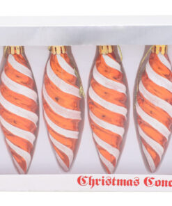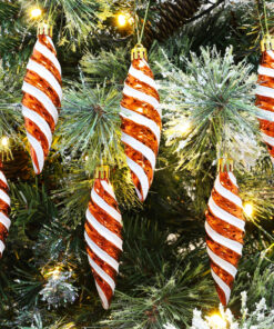 Make your Christmas decor stand out this year with these stunning shatterproof baubles. Each bauble comes decorated with a shiny base and a glittery iridescent spiral pattern. Each bauble measures 110mm x 50mm (4.4 x 2 Inch) and comes with a string loop attachment for easy hanging. The baubles come in a durable storage box; keeping them in great condition to use year after year. Designed and manufactured exclusively for Christmas Concepts.
