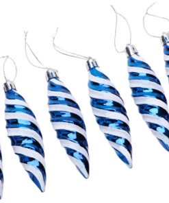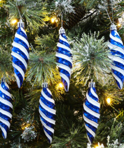 Make your Christmas decor stand out this year with these stunning shatterproof baubles. Each bauble comes decorated with a shiny base and a glittery iridescent spiral pattern. Each bauble measures 110mm x 50mm (4.4 x 2 Inch) and comes with a string loop attachment for easy hanging. The baubles come in a durable storage box; keeping them in great condition to use year after year. Designed and manufactured exclusively for Christmas Concepts.