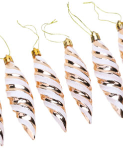 Christmas Concepts® Pack of 6-110mm Large Spiral Shaped Baubles – Shiny & Glitter Decorated – Christmas Tree Decorations (Rose Gold)
