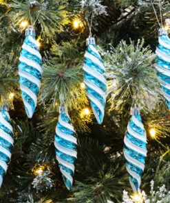 Make your Christmas decor stand out this year with these stunning shatterproof baubles. Each bauble comes decorated with a shiny base and a glittery iridescent spiral pattern. Each bauble measures 110mm x 50mm (4.4 x 2 Inch) and comes with a string loop attachment for easy hanging. The baubles come in a durable storage box; keeping them in great condition to use year after year. Designed and manufactured exclusively for Christmas Concepts.