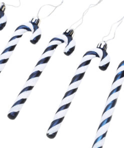 Christmas Concepts® Pack Of 6 – 13cm Glitter Candy Cane Christmas Tree Decorations (Midnight Blue & White)