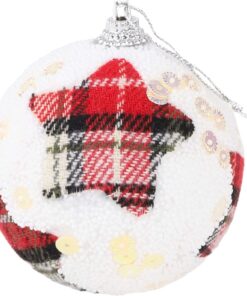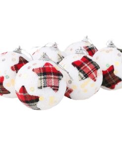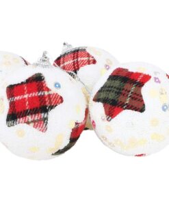 - Each bauble measures approximately 7cm and is covered with tony white pearls and perfectly decorated with tartan stars.