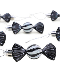 Christmas Concepts® Pack of 6-8cm Mini Sweet Shaped Baubles – Shiny & Glitter Decorated – Christmas Tree Decorations (Black)