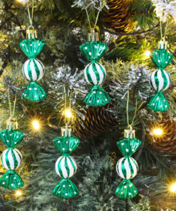 Christmas Concepts® Pack of 6-8cm Mini Sweet Shaped Baubles – Shiny & Glitter Decorated – Christmas Tree Decorations (Emerald Green)