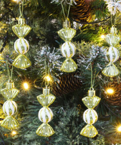 Christmas Concepts® Pack of 6-8cm Mini Sweet Shaped Baubles – Shiny & Glitter Decorated – Christmas Tree Decorations (Gold)