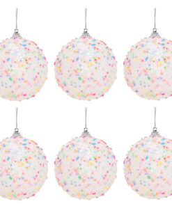 Christmas Concepts® Pack of 6-90mm (3.5″) White Glittery Baubles With Multi Coloured Sprinkles – Candy Land Themed Christmas Tree Baubles