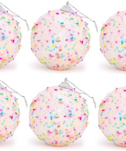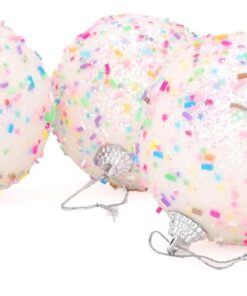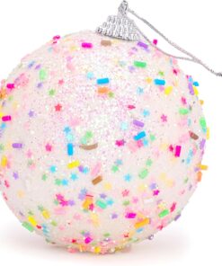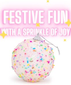 • Each bauble measures 90mm (3.5″”) and comes decorated with high quality iridescent glitter and colourful decorative sprinkles.