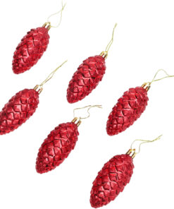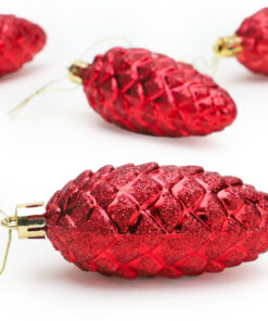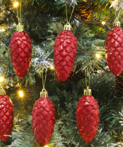 Christmas Concepts® Pack of 6-90mm Pine Cone Baubles – Shiny and Glitter Decorated – Luxury Christmas Decorations (Red)