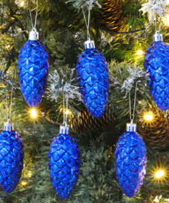 Christmas Concepts® Pack of 6-90mm Pine Cone Baubles – Shiny and Glitter Decorated – Luxury Christmas Decorations (Royal Blue)