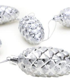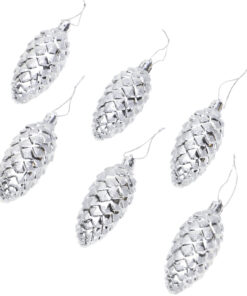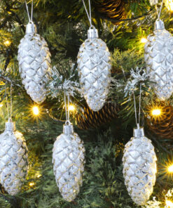 Christmas Concepts® Pack of 6-90mm Pine Cone Baubles – Shiny and Glitter Decorated – Luxury Christmas Decorations (Silver)