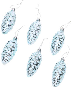 Christmas Concepts® Pack of 6–90mm Shiny & Glitter Decorated Pine Cone Baubles – Christmas Tree Decorations (Ice Blue)